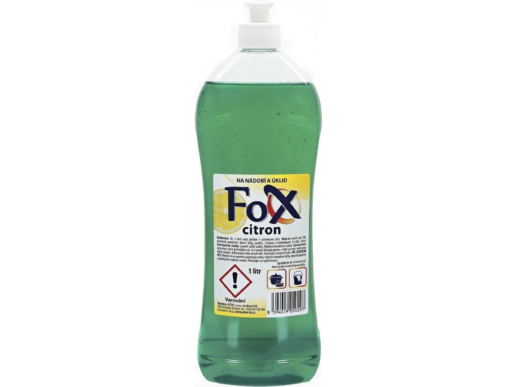 FOX CITRON je univerzální čisticí prostředek na ruční mytí nádobí a na úklid všech druhů nenasákavých povrchů. Přípravek má široké možnosti využití v celé domácnosti a je také využíván úklidovými firmami. FOX CITRON používejte na nádobí a na všechny omyvatelné plochy jako např. obklady, podlahy, dlaždice, plastový nábytek, rámy oken a parapety, kuchyňské plochy. Přípravek zanechává povrchy lesklé a beze šmouh a je parfemován jemnou citronovou vůní.