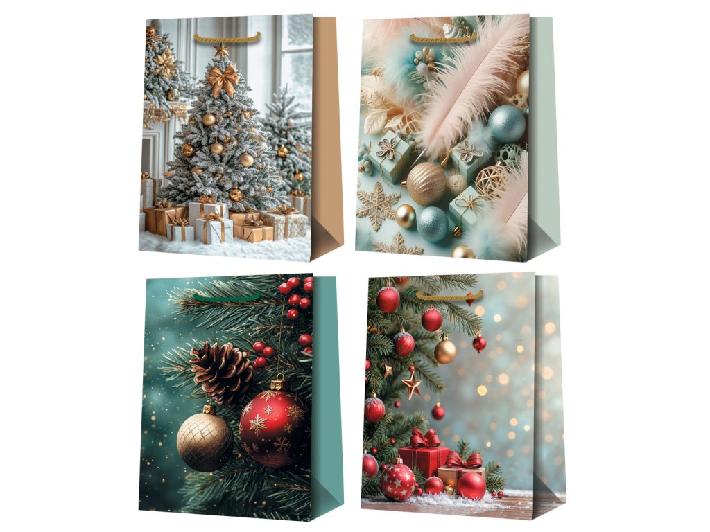- ucha z bavlněné šňůrky- rozměry: 26 x 32 x 13,5cm- gramáž papíru: - mix vánočních motivů