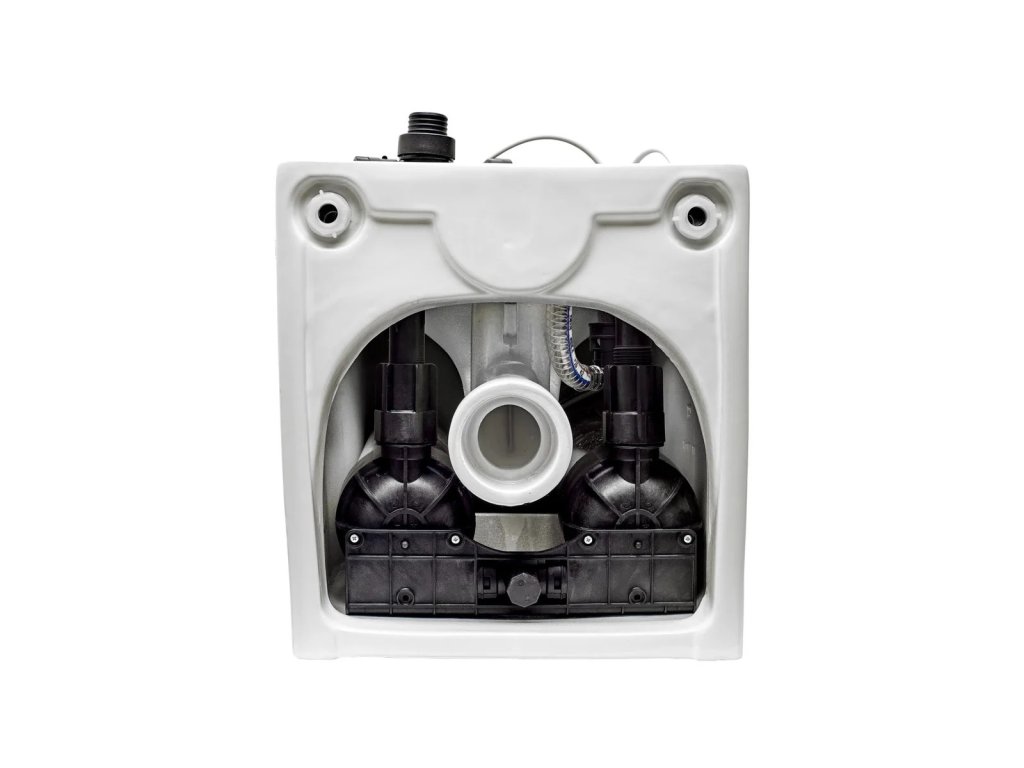 WC nepotřebuje podomítkovou nádržku ve zdi, ani zdroj externí energie, vše je uvnitř. Využívá vlastnosti stlačeného vzduchu, který se akumuluje tlakem z vodovodního řadu.